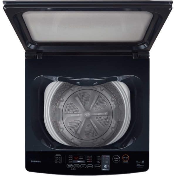 A large top-load washer with 17kg capacity and direct drive inverter motor for quiet, efficient performance.